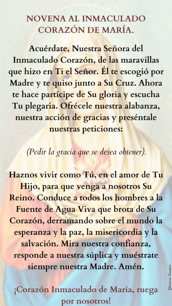 NOVENA AL INMACULADO CORAZÓN DE LA SANTÍSIMA VIRGEN MARÍA.